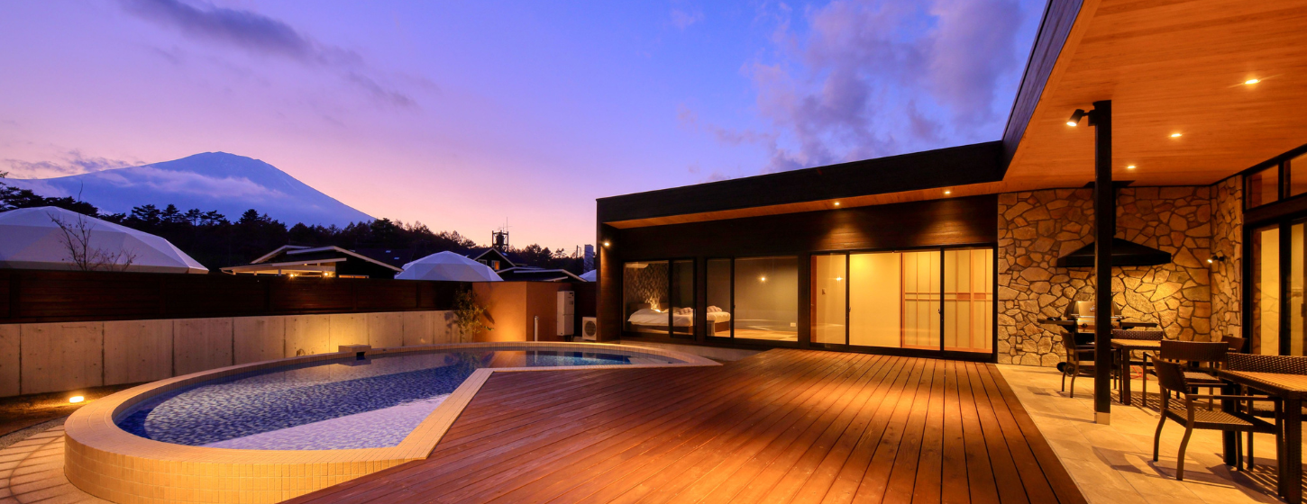 それぞれに異なる特色を持ちながらも、富士山を中心とした自然美に恵まれたエリアです。山梨の富士五湖エリアは緑の美しさを存分に味わえるグランピングを中心に展開し、2026年には関東屈指の温泉街である箱根にも開業を予定しております。