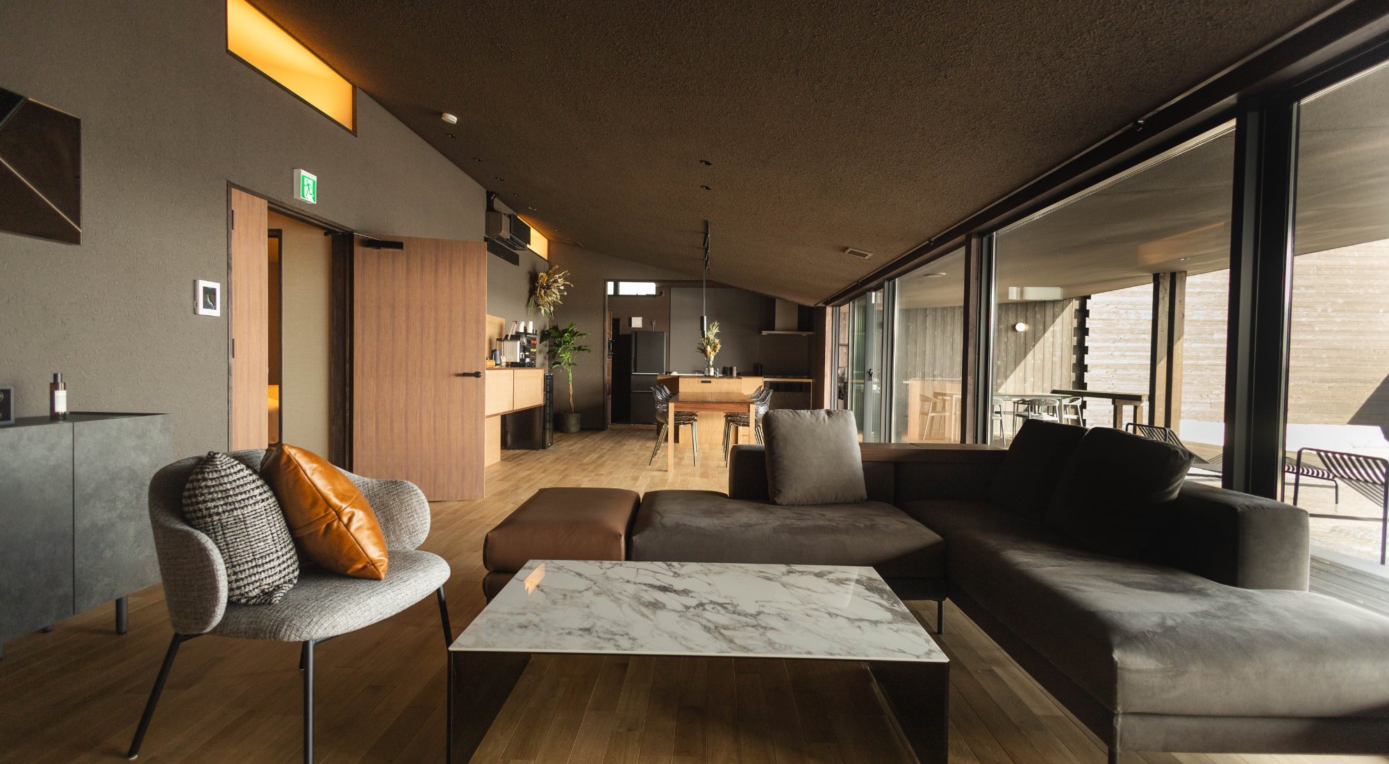 建築と空間の調和を生み出すインテリア。デザイン性だけでなく、実用性と快適性を兼ね備えた飽きのこない欧州ブランド「Arflex アルフレックス」の家具でコーディネートしています。